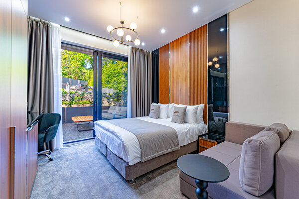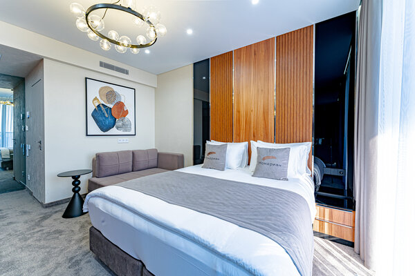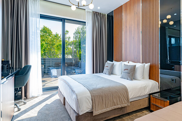 Все номера отеля, спроектированные по самым современным стандартам, оснащены балконами или террасами. Комфортабельные кровати с ортопедическими матрасами гарантируют полноценный сон, а в собственной ванной комнате с душем и феном вы найдете все необходимое. К вашим услугам современная мебель, мини-холодильник, кондиционер, ЖК-телевизор, сейф, кофе-машина, электрочайник, утюг и гладильная доска.