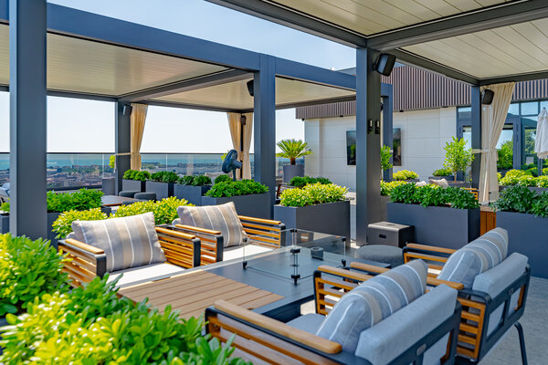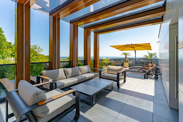 На ухоженной закрытой территории «Мондриан», утопающей в зелени, расположен открытый подогреваемый бассейн с летним кафе, лежаками и уютными беседками. Ресторан отеля предлагает изысканное меню от шеф-повара, доступное к заказу в любое время. Для полного расслабления посетите SPA&Wellness центр, где царит атмосфера спокойствия. Изюминка отеля — панорамная терраса на крыше с кинотеатром под открытым небом, лаундж-зонами с кальянами, патио-столами с живым огнем и специальным сет-меню, идеальная для вечернего досуга. Любители активного отдыха оценят уличные тренажеры, а для самых юных гостей предусмотрена яркая и безопасная детская площадка с травмобезопасным покрытием. К услугам гостей также охраняемая парковка и бесплатный Wi-Fi на всей территории.