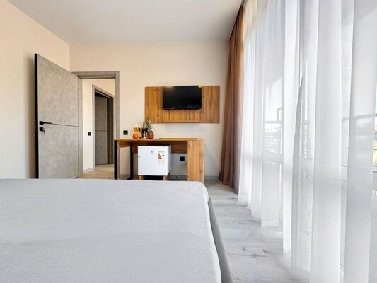 Отель расположен в уникальном месте, вблизи заповедных зон Бугазской косы и Солёного озера, предлагая гостям чистейшие пляжи и целебный морской воздух. В 850 метрах от отеля находится лучшая кайт-школа, а Черное море и Кизилташский лиман идеально подходят для виндсерфинга и кайтсерфинга. Муниципальный пляж с водными аттракционами находится всего в 300 метрах.
