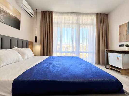 Новый отель «Море Лофт» расположен на первой линии песчаного пляжа в курортном поселке Веселовка на Таманском полуострове. Уютные и стильные номера оснащены всем необходимым: кондиционером, мини-холодильником, чайником, телевизором и ванной комнатой. К услугам гостей подогреваемый бассейн и мангальная зона. Рядом находятся кафе, магазины, рынок и пляжные бары.