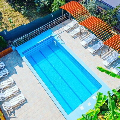 На территории гостевого дома есть: открытый бассейн с подогревом, детская площадка, зона барбекю.