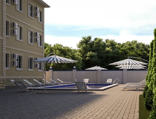 Здание отеля возвышается на благоустроенной территории с площадью в один гектар. Отель работает по системе «все включено» и предлагает своим гостям вместительный номерной фонд. Просторные и светлые номера различных категорий комфорта укомплектованы современной техникой, удобной мебелью, в ряде комнат имеются балконы, с которых открываются красивые виды на горы и окрестности поселка Сукко.