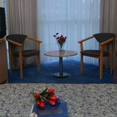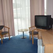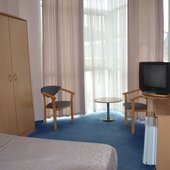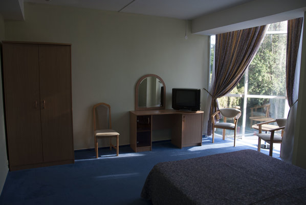 Однокомнатные номера оборудованы одной или двумя кроватями, шкафом, креслом, столом и стульями. Для дополнительного спального места можно использовать еврораскладушку. В двухкомнатных люксах есть еще мягкие гарнитуры.