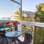 «Мыс Видный» - филиал АО «РЖД-ЗДОРОВЬЕ» – санаторий в городе Сочи, который находится на южном склоне горы Ахун в Тихой бухте поселка Хоста. Первое, чем привлекает это место отдыхающих, – поистине чистый воздух с ароматом хвои. Неудивительно, ведь это место относится к Ботаническому памятнику «Мыс Видный» – уникальному заповеднику, где произрастают пицундские сосны. Возраст их – более 100 лет, а средняя высота достигает 20 метров. Поэтому санаторий «Мыс Видный» оптимально подходит для лечения болезней легких, нервной системы и системы кровообращения.