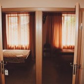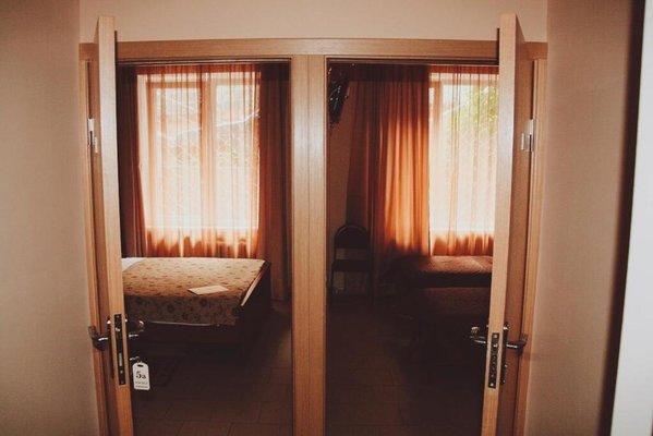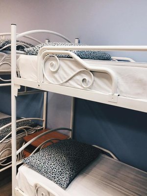 Номера представлены как многоместные, так и индивидуальные двухместные. Комнаты оборудованы двухъярусными или двухместными кроватями. Интерьер выполнен в классических светло-бежевых оттенках. Ванные оборудованы душем и туалетом.