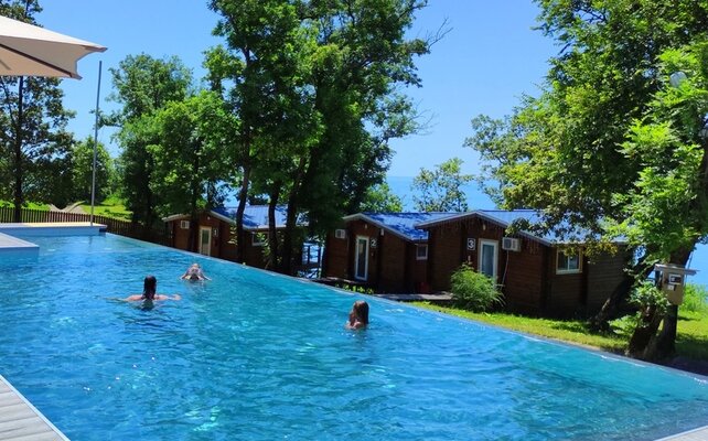База отдыха «На высоте» — это комфортабельный деревянный дом с роскошным бассейном на берегу Черного моря, в 7км от Туапсе. Он расположен на красивом лесистом плато, в дали от шума автотрассы и курортного поселка.