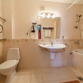 Крытый бассейн с площадью чаши – 20х10 метров наполнен минеральной водой. Одна из его стен снабжена оборудованием для гидромассажа различных частей тела. Для гостей с ограниченными возможностями предусмотрены специальные кресла для погружения в воду и выхода из бассейна.