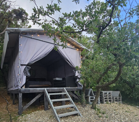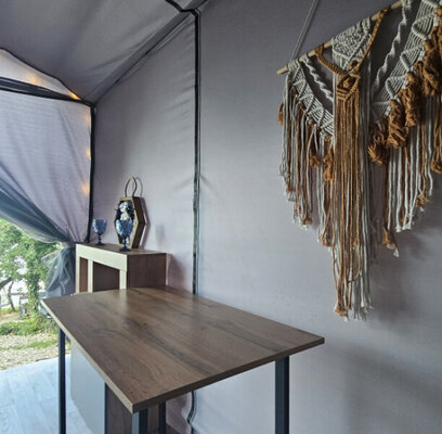 Наши VIP-шатры премиум-класса, укрытые в прохладной тени леса, предлагают панорамный вид и безмятежное уединение. Интерьеры источают органическую ауру с натуральной древесиной, ручной работой и предметами декора, создавая ощущение гармонии с природой. Современная техника и удобная ванная комната дополнят ваш комфорт.