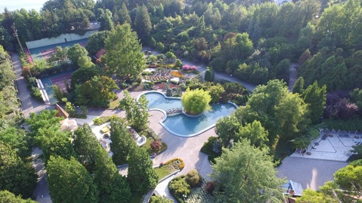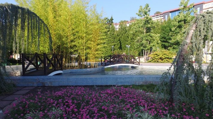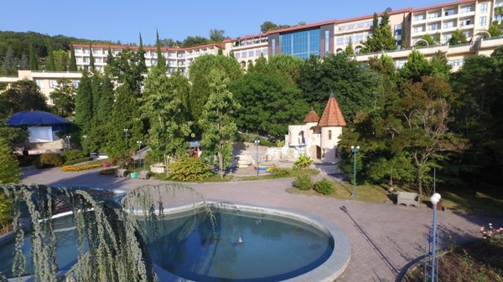 В санаторный комплекс входят спальные корпуса с уютными номерами разных категорий, объединенные атриумом, а также медицинский корпус и уединенные коттеджи-апартаменты. Здания окружены уникальным дендрологическим парком, выполняющим не только эстетические, но и лечебные функции.