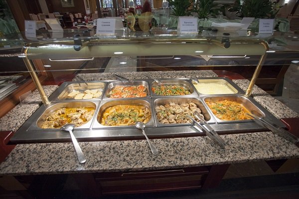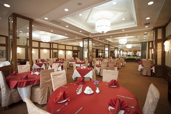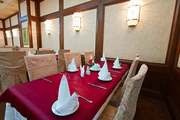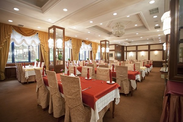Основной ресторан — «Голубое пламя», кухни: русская, украинская, европейская, кавказская, морепродукты, свежие овощи и фрукты, аппетитные десерты и напитки; время работы: с 8:30 - 10:00, с 13:30 - 15:00, с 18:30 - 20:00