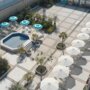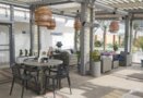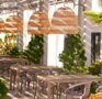 - Летняя терраса с шезлонгами, зонтами, столами и аквабаром.