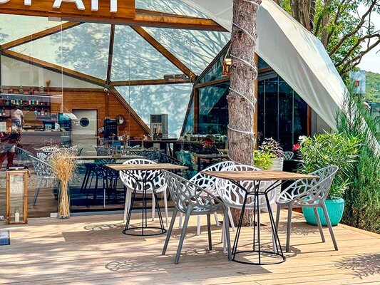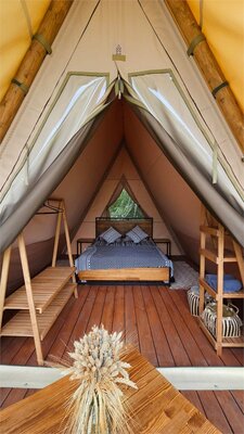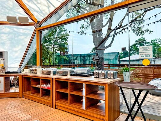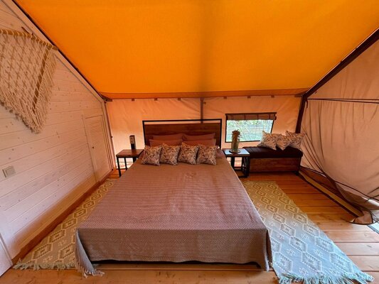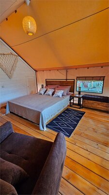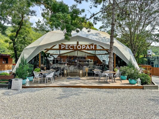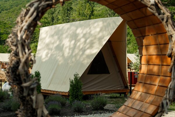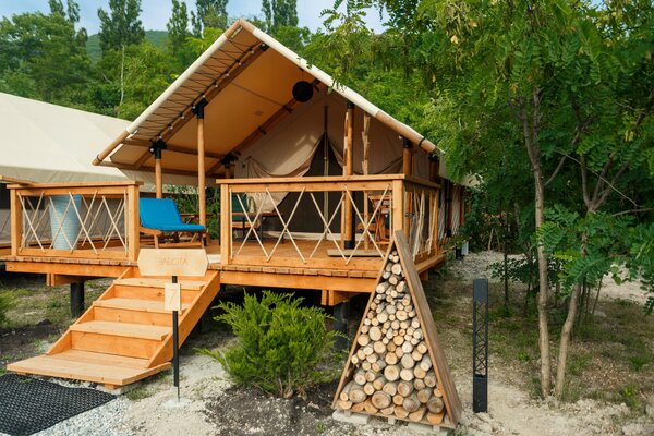 - Широкий выбор комфортабельных номеров в отеле и уникальные глэмпинг-тенты.