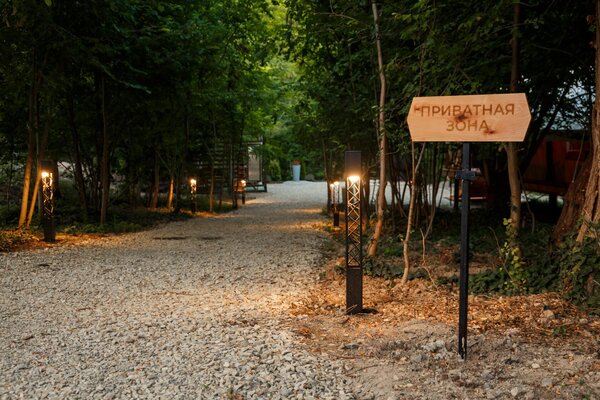 На въезде в глэмпинг имеется огороженная освещённая парковка.