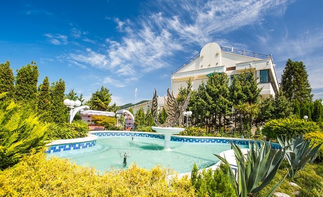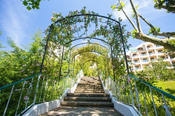 Санаторий расположен на шести гектарах собственной территории в окружении магнолий, пальм, кактусов, кипарисов и других уникальных вечнозеленых деревьев и кустарников, собранных из Австралии, Китая, Мексики, которые в сочетании с красивыми фонтанами создают великолепную атмосферу для прекрасного настроения.