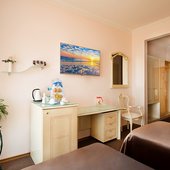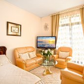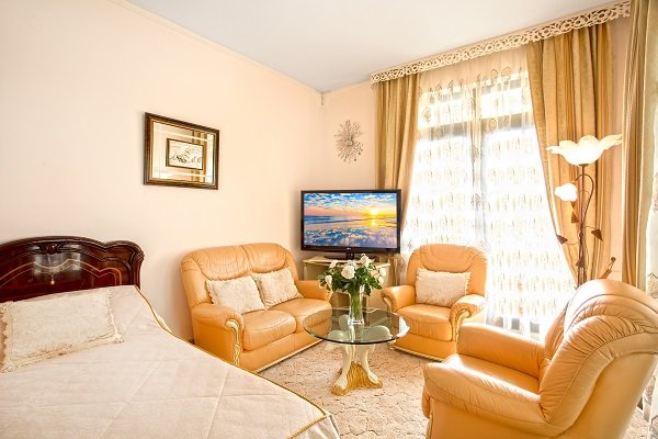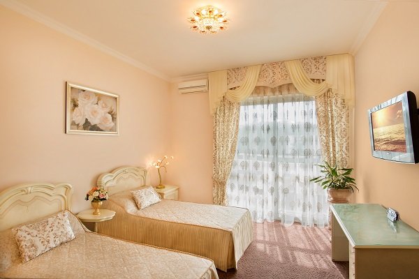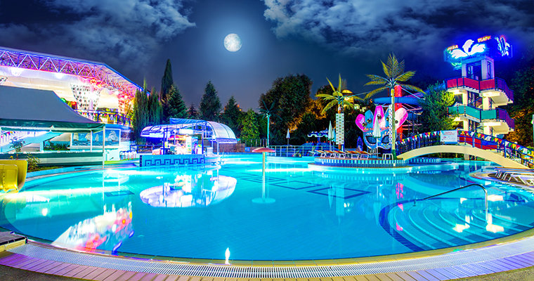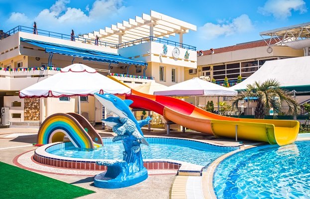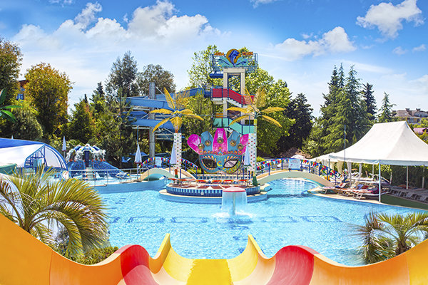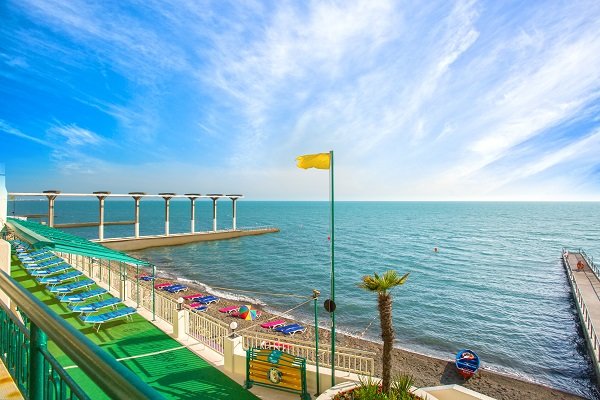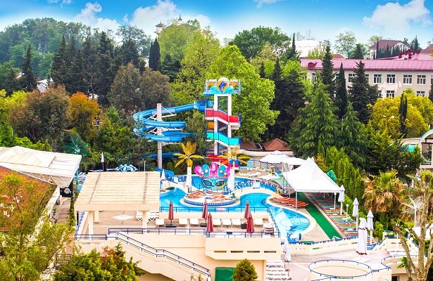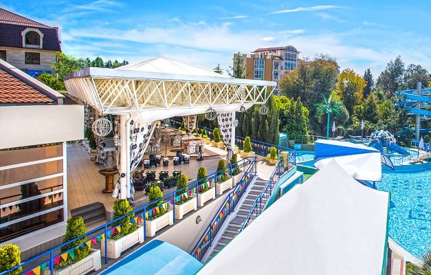 К услугам гостей – любые водные развлечения. Предлагается собственный просторный галечный пляж, крытый бассейн с теплой водой и аквапарк с горками для детей и взрослых.