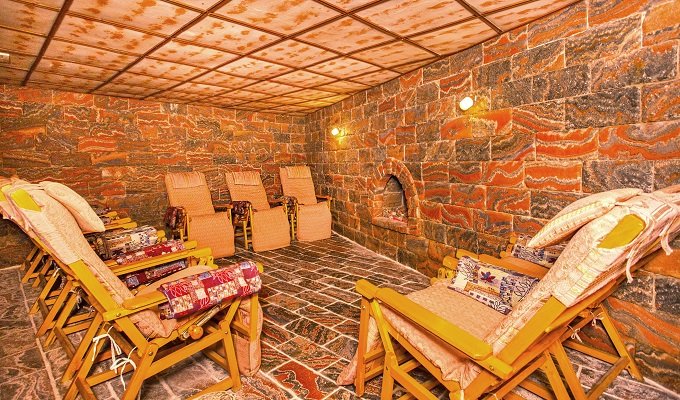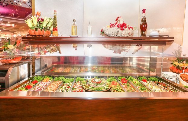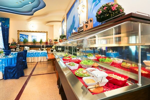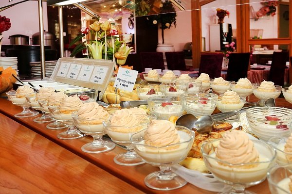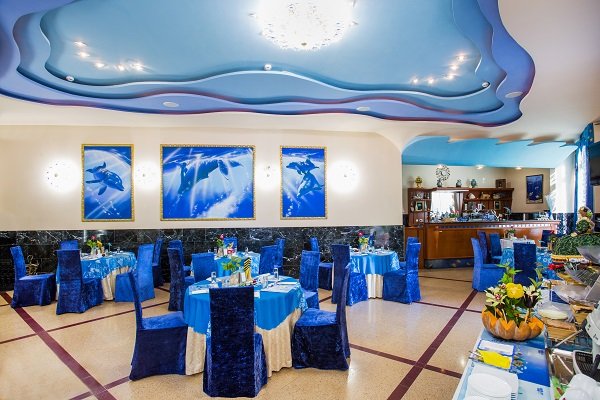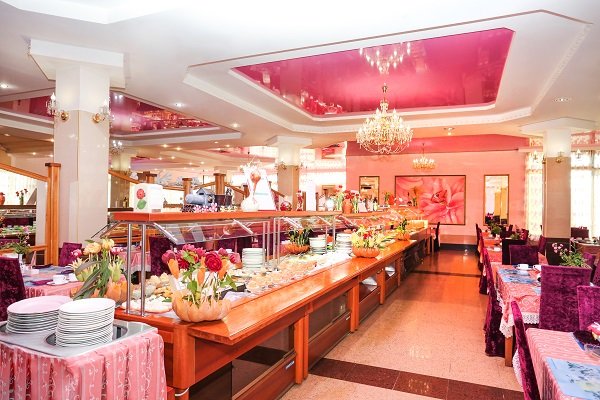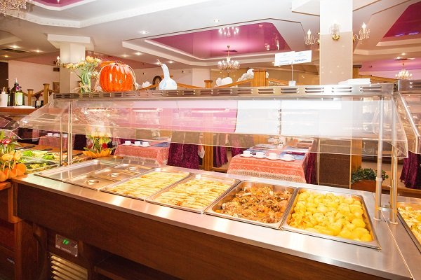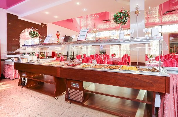 Основной ресторан — на 350 мест. 3-х разовое меню по системе «шведский стол». Диетические столы по предписанию врача.