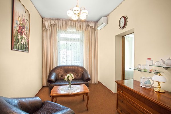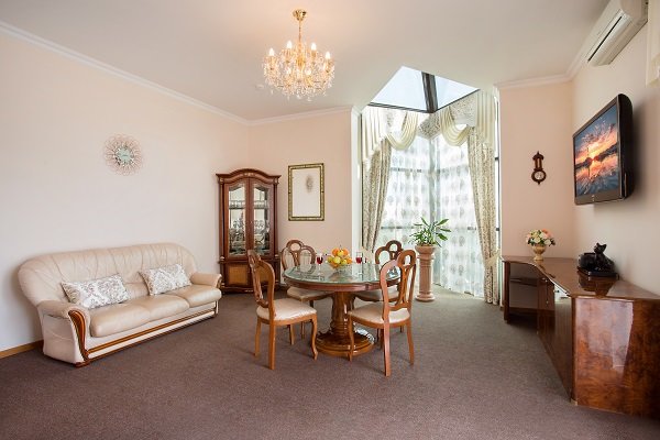 «Октябрьский» включает лечебный корпус, 3 спальных корпуса и 8 коттеджей с комфортабельными номерами, оснащенными всем необходимым для отдыха.
