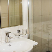 В номерах стоит заменить душевые кабины. Кондиционер работает очень плохо.