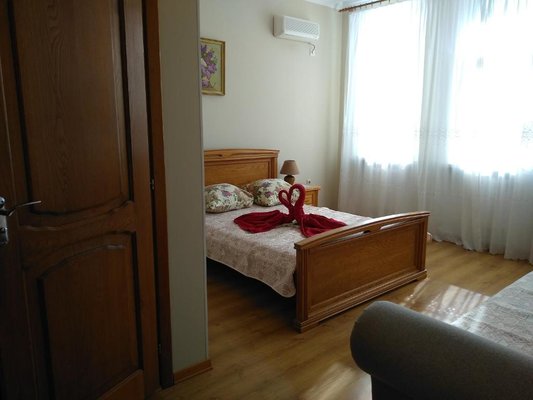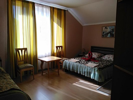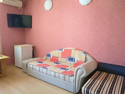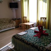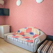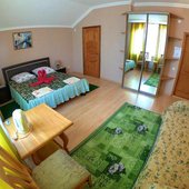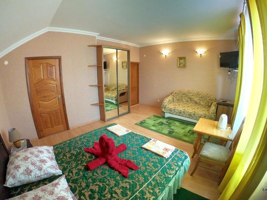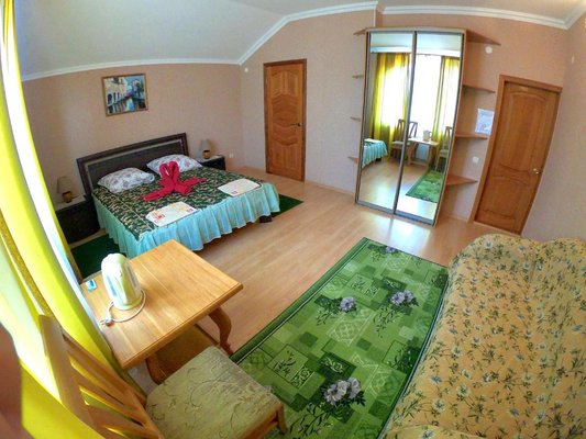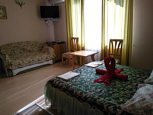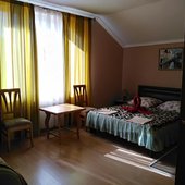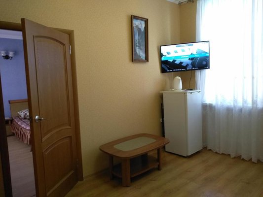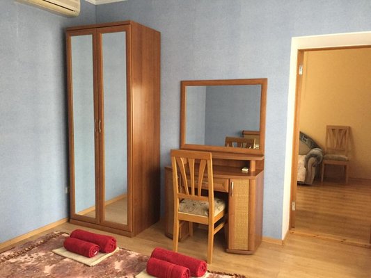 Дизайн интерьера выполнен в классическом стиле, сделан современный ремонт. В просторных комнатах созданы все условия для полноценного размещения и комфортного проживания. В распоряжении постояльцев будет: шкаф, телевизор с плоским экраном, холодильник, собственная ванная комната.