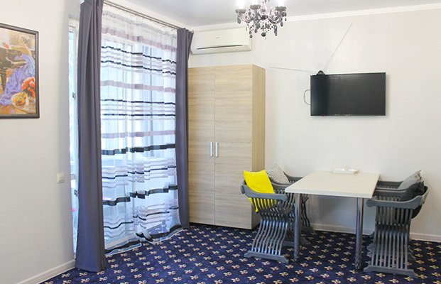 - Ухоженная территория мини-отеля окружена пышной южной растительностью, внутренний двор украшен фонтаном.