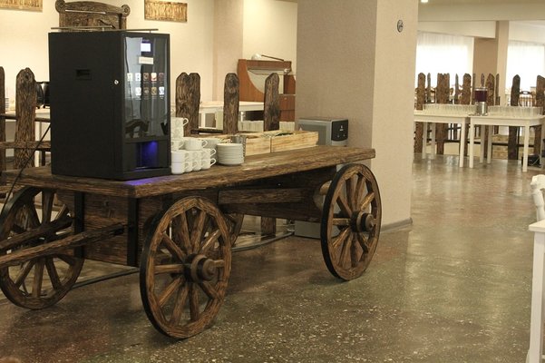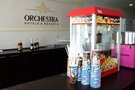 C 11-00 до 18-00 гости отеля всегда могут подкрепиться легкими закусками, пиццей, выпить чай или кофе с кондитерскими изделиями, насладиться прохладительными безалкогольными и алкогольными напитками. А юные гости всегда могут угоститься сладкой ватой или поп-корном.