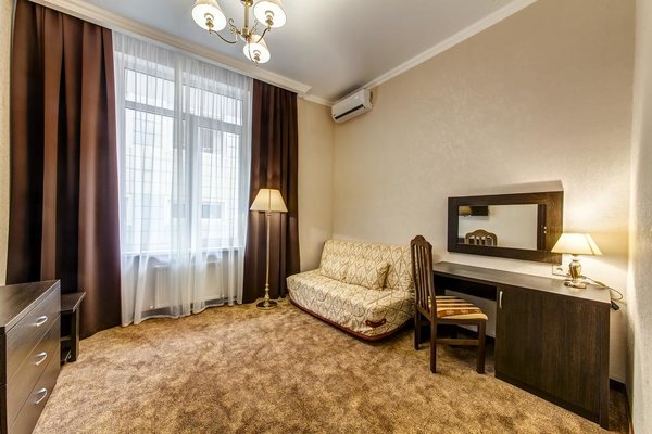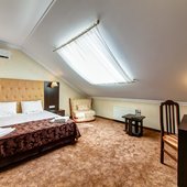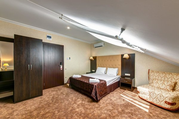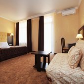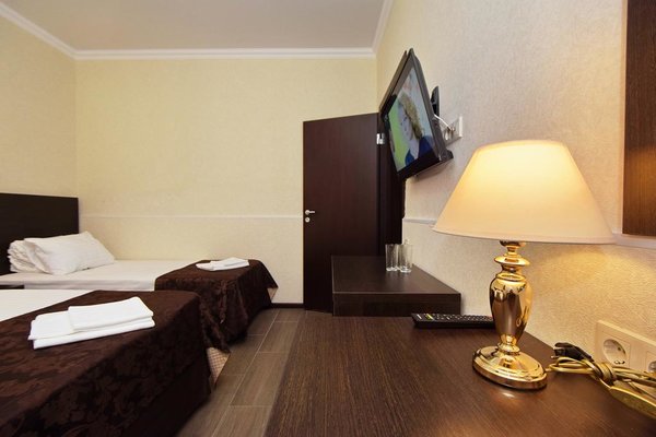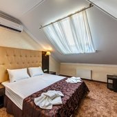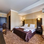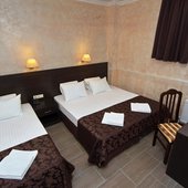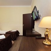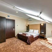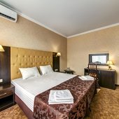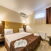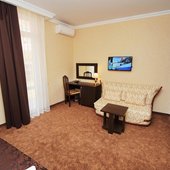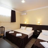 К услугам постояльцев номера на 2 – 4 человека с возможностью дополнительного размещения вполне комфортабельного спального места (раскладное кресло). Также постояльцы могут выбрать либо двуспальную кровать, либо две односпальных. Номера оборудованы телевизорами с большим количеством спутниковых каналов, холодильниками, кондиционерами.