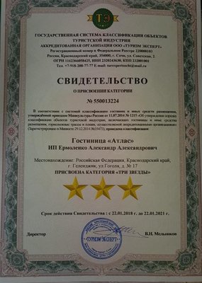 Отель «Атлас» расположен в Геленджике. К услугам гостей сауна и открытый бассейн с диско-баром. По-домашнему уютные номера отеля «Атлас» оформлены в простом стиле и застелены паркетным полом. В большинстве из них установлен телевизор и обустроена собственная ванная комната с душем. В кафе накрывают завтрак и сервируют блюда русской и европейской кухни.