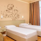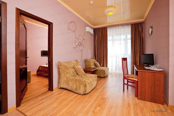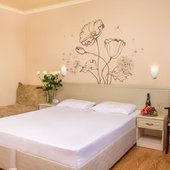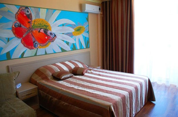 Просторные и комфортабельные номера порадуют Вас своей уютной атмосферой. Каждый из них оснащен телевизором, кондиционером, удобной мебелью и личной ванной комнатой. Из окон открывается великолепный вид на горы или же море.