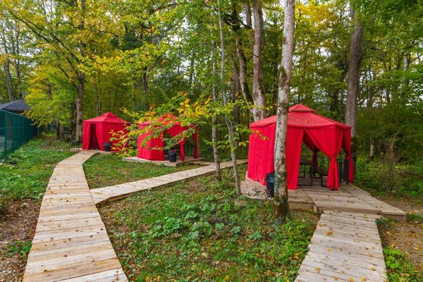Стоимость — 500 рублей за 1 час. Гости, проживающие в отеле, пользуются беседками бесплатно.