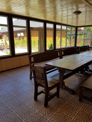 Беседка с остеклением на компанию из 30 человек. Стоимость — 1000 рублей за 1 час (количество человек не важно).
