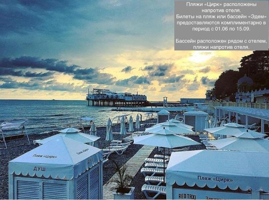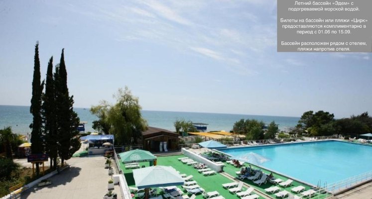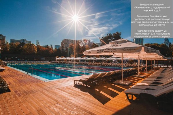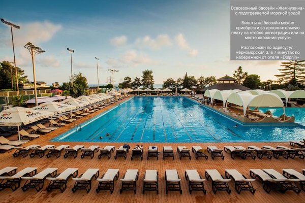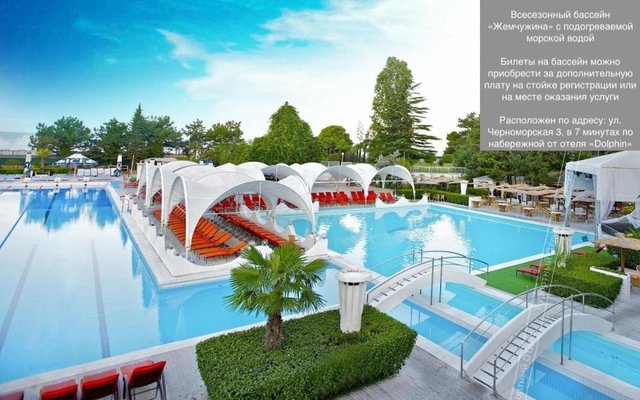 Элегантный курортный отель «Дельфин» расположен в окружении прекрасной природы на берегу моря в Сочи. Гостиницу окружает благоустроенная ухоженная территория, видом которой приятно наслаждаться в любое время года. По соседству с гостиницей также находится прекрасный парк, гулять в котором одно удовольствие. С окон ресторанно-гостиничного комплекса открываются великолепные панорамы на море и город. Заведение находится в центре курорта, поэтому гости в любое удобное для себя время смогут посетить достопримечательности Сочи.