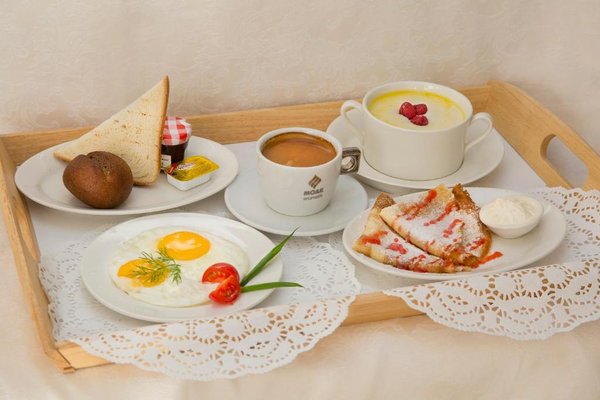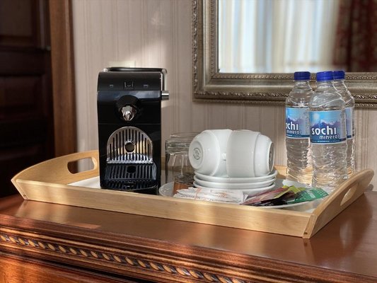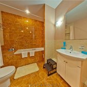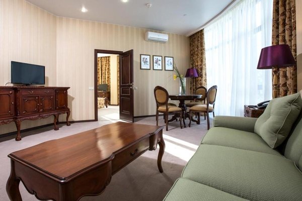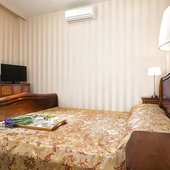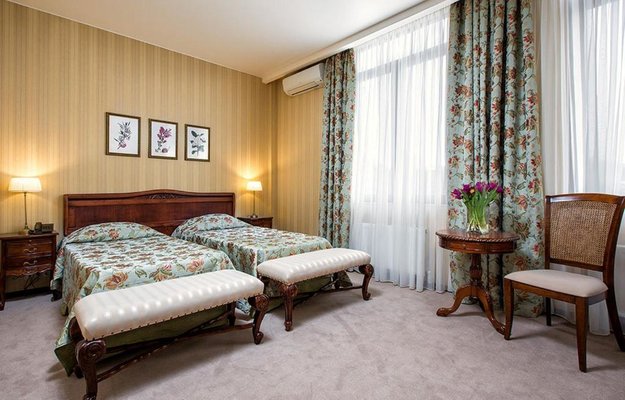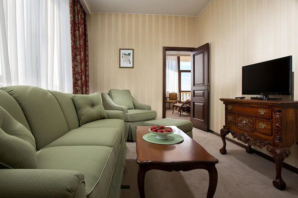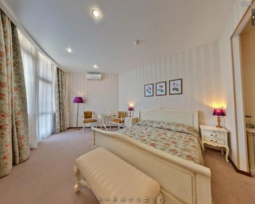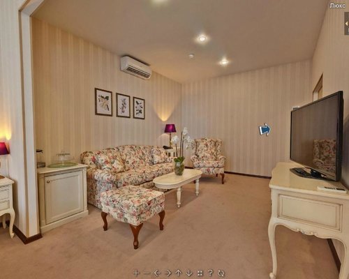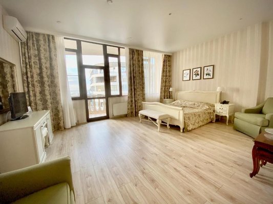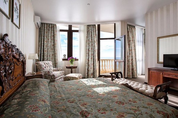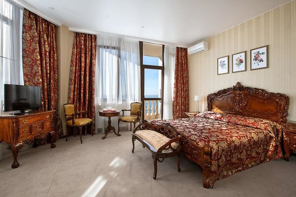 Номера оформлены в необычном дизайне в стиле бидермейер. В интерьере преобладают теплые, нежные оттенки. Комнаты оснащены функциональной мебелью, кондиционерами. Ванные комнаты с набором средств личной гигиены и биде расположены в номерах. Из окон открывается живописный вид на море или горы. Все гости смогут выбрать вариант проживания подходящий своим запросам. В уютной гостиной зоне для отдыха расположены мягкая мебель и телевизор, к тому же, есть выход на балкон. Здесь хорошо отдохнуть после насыщенного дня или провести время с семьей и друзьями. В номерах продумано все до мелочей. Для гостей созданы необходимые условия, чтобы сделать отдых наиболее комфортным.