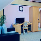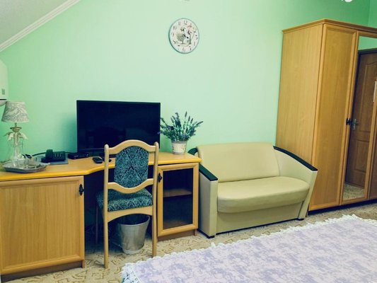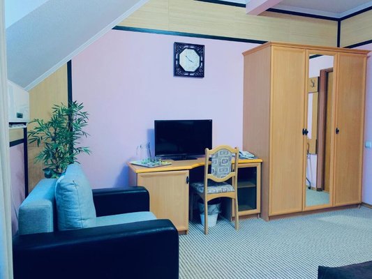 В километре находится железнодорожная станция. Наличие различного номерного фонда поможет гостям отдохнуть с комфортом, так же на первом этаже расположено кафе. Номерной фонд гостиницы составляет 15 комфортабельных номеров.