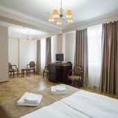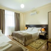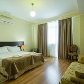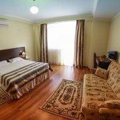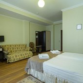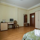 Просторные номера отеля Green Hosta оформлены в классическом стиле и оборудованы холодильником. В собственных ванных комнатах установлен душ и предоставляются туалетно-косметические принадлежности. Из некоторых номеров предусмотрен выход на отдельный балкон.
