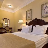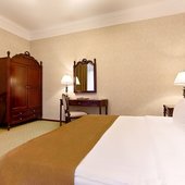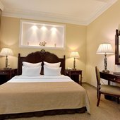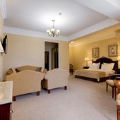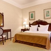 Номерной фонд представлен различными категориями. Каждый из них выполнен в классическом стиле и обставлен необходимой мебелью.