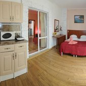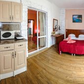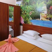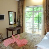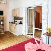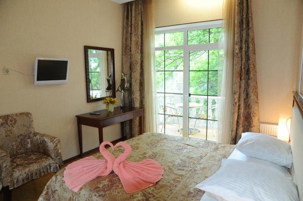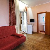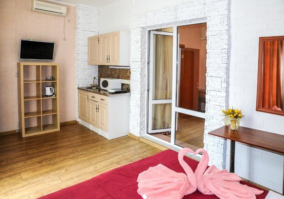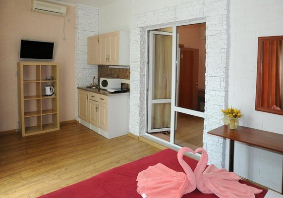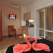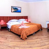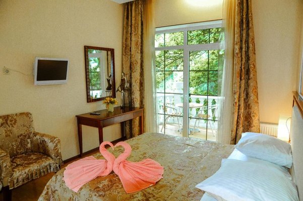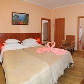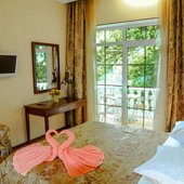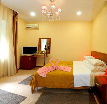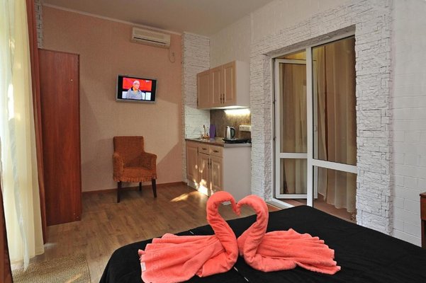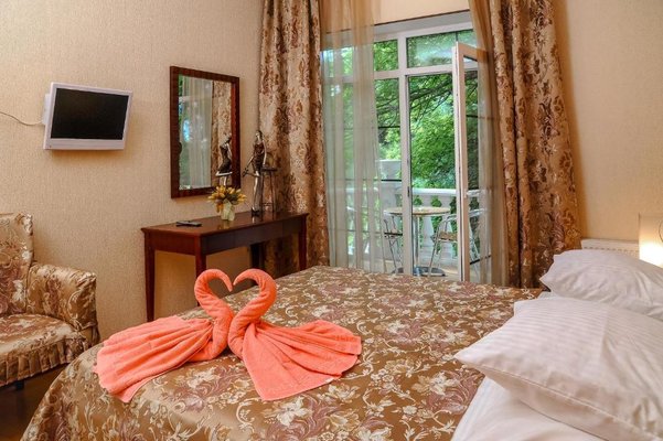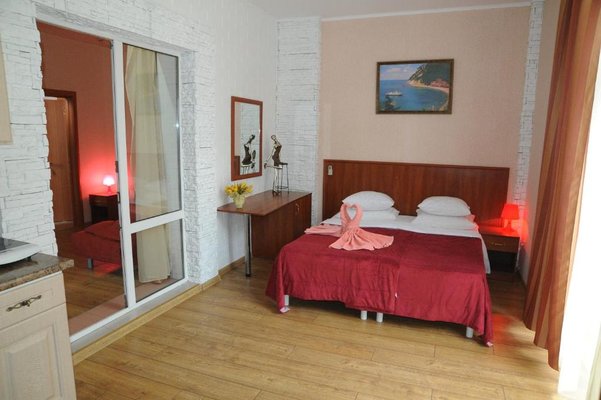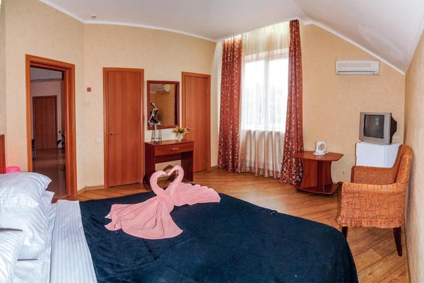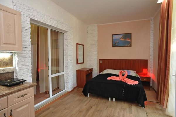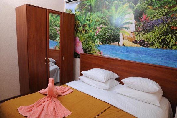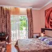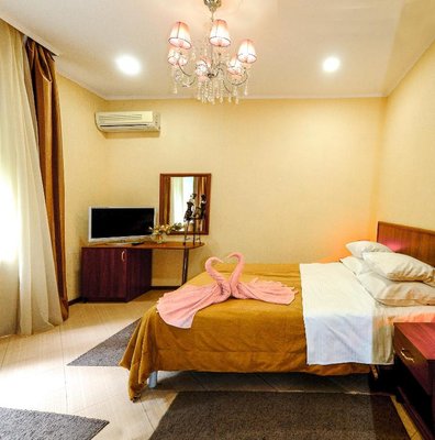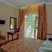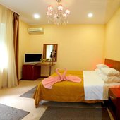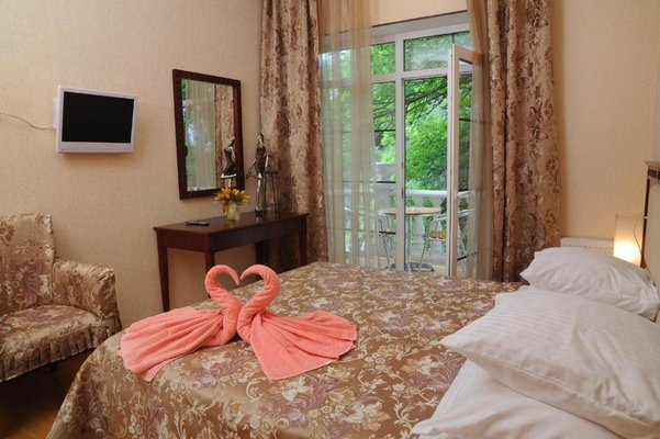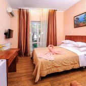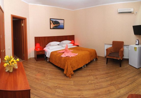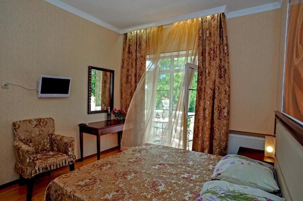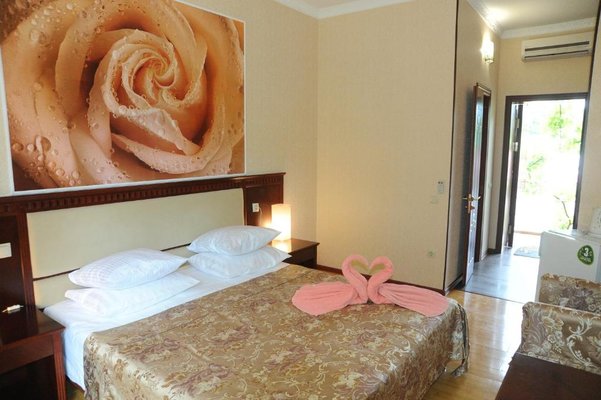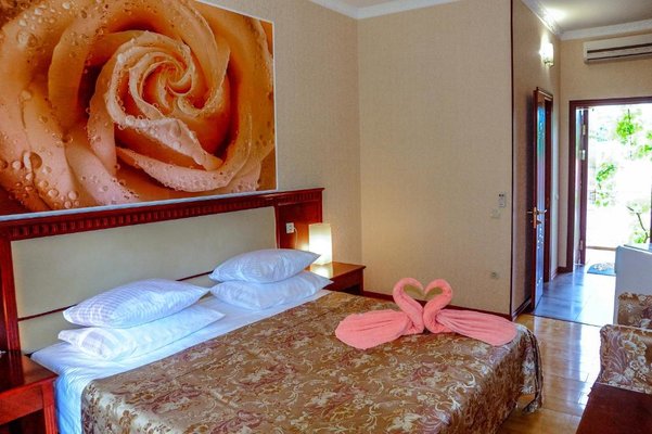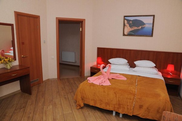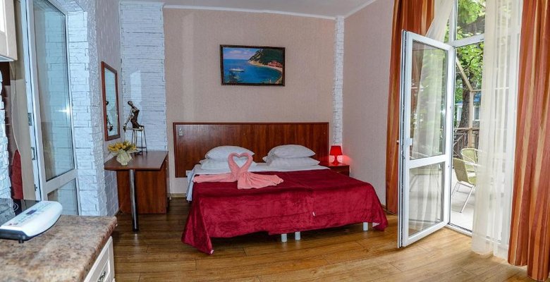 Отель вмещает 15 номеров от уровня «стандарт» до люксовых трехкомнатных апартаментов с террасами. Холодильники, сплит-системы, ванные комнаты, телевизоры, WiFi - во всех номерах. Оформление современное, выполненное в спокойных тонах без вычурности.