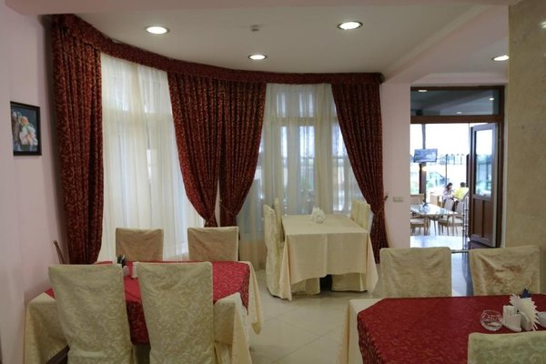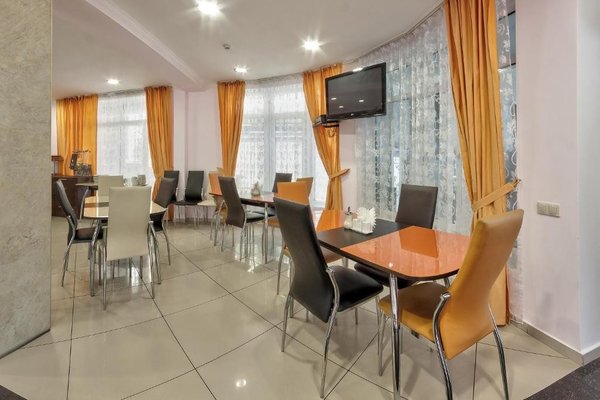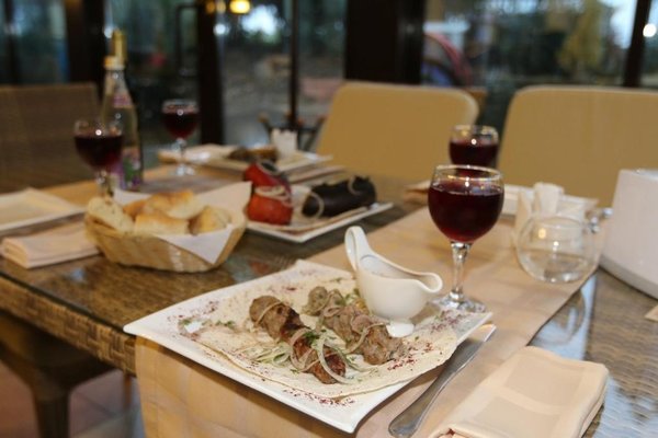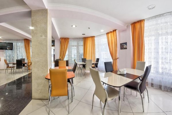 На первом этаже отеля расположен ресторан «Кавказ», где можно насладиться разнообразным выбором блюд. Меню включает как традиционные кавказские блюда, так и изысканные морепродукты, удовлетворяющие самый взыскательный вкус.