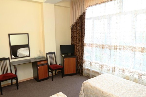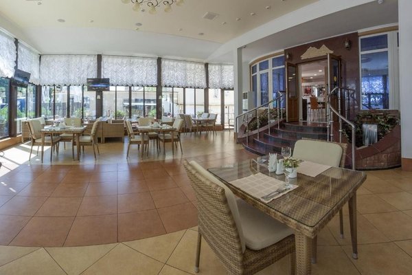 Отель предоставляет гостям питание за отдельную плату. При отеле работают столовая с трехразовым питанием и ресторан с русской, европейской и кавказской кухней, где отдыхающие могут выбрать блюда и напитки на любой вкус. Ресторан открыт почти весь день — с 11:00 до полуночи.