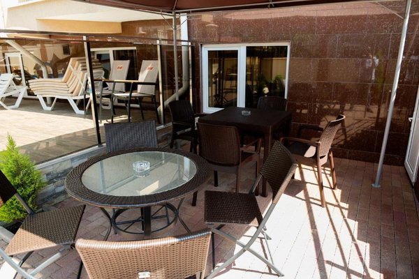 На территории отеля есть столовая, открытый бассейн с подогревом и зона отдыха с шезлонгами. Для гостей предусмотрена парковка, а также детская игровая площадка. Всего в 10 минутах ходьбы можно дойти до галечного пляжа, на котором есть раздевалки, навесы от солнца, шезлонги, лежаки и разнообразные водные развлечения.
