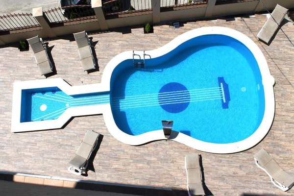В 10 – 15 минутах ходьбы от отеля «Маэстро» находится городской пляж с хорошо обкатанной некрупной галькой. Здесь за вполне приемлемую плату можно взять в аренду пляжный инвентарь: лежаки или солнцезащитные зонтики. Также на пляже можно развлечься, катаясь на «бананах» или водных велосипедах. Рядом есть и ларьки с прохладительными напитками и легкими «перекусами».