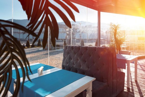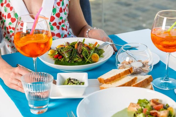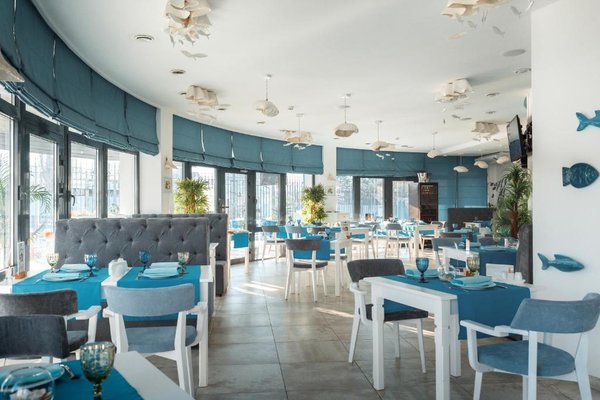 В отеле работает ресторан «Аквариум», который утром сервирует завтраки, а так же осуществляет доставку блюд в номер. Имеется бар с напитками.