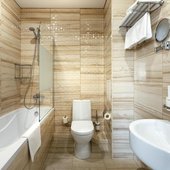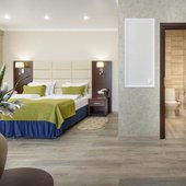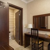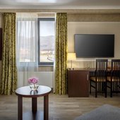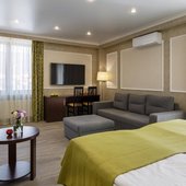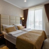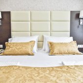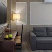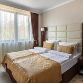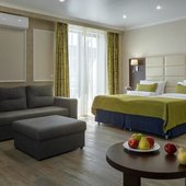 Здесь рады предложить гостям комфортное размещение в уютных номерах с индивидуальной ванной комнатой, а так же кабельным телевидением, кондиционером и бесплатным Wi-Fi. Уборка в номерах происходит каждый день. На территории отеля работает открытый бассейн с подогревом, сад, площадка барбекю. Для детей игровые площадки и комнаты с фильмами и книгами, рядом находится аквапарк. Регистрация новых постояльцев происходит круглосуточно. Личный автомобиль можно оставить на охраняемой парковке.