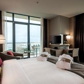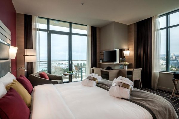 Современное здание отеля удобно расположено в пешей доступности от морского порта, торговых центров, а также от развлекательных заведений: аквапарка, Зимнего театра, концертного зала.