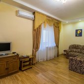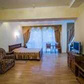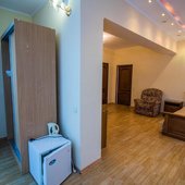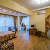 В каждом номере есть вся необходимая техника и новая мягкая мебель. Каждый оснащен кондиционером, телевизором. В ванной комнате есть средства для личной гигиены. Набор полотенец предоставляется.