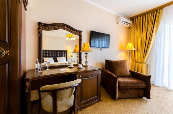 Для вас в отеле оборудованы уютные, комфортные номера. Дизайн интерьера выдержан в классическом Европейском стиле. Изысканная мебель, современная техника, стильные украшения — все это сделает ваш отдых еще приятнее.