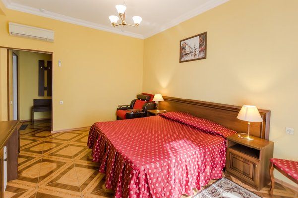 Комфортабельные номера оборудованы кондиционером, холодильником и телевизором с плоским экраном и спутниковыми каналами. Кроме того, в распоряжении гостей собственная ванная комната с бесплатными туалетно-косметическими принадлежностями.