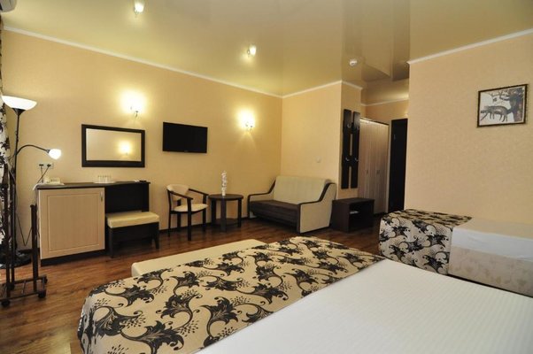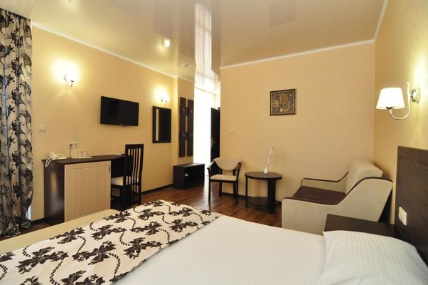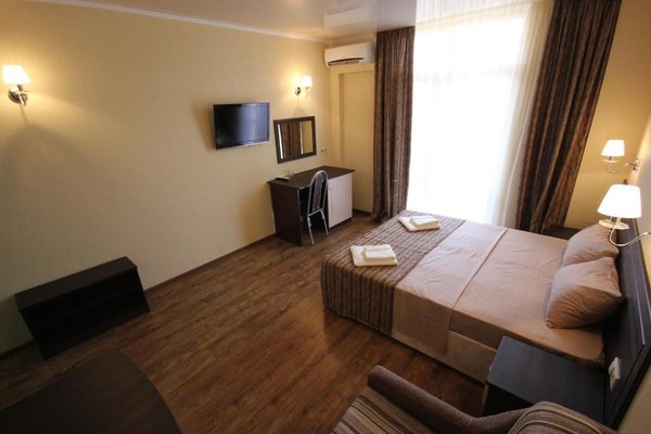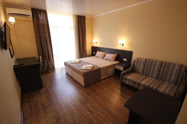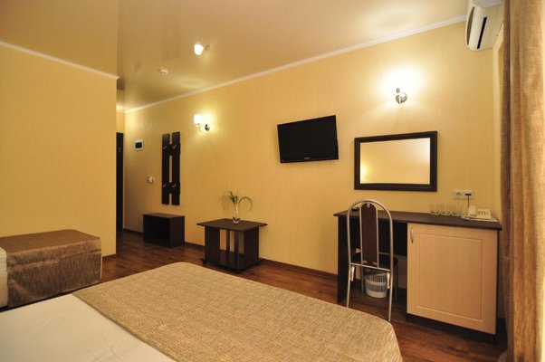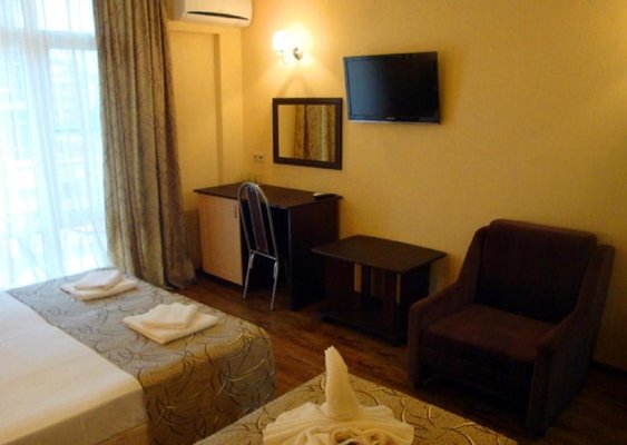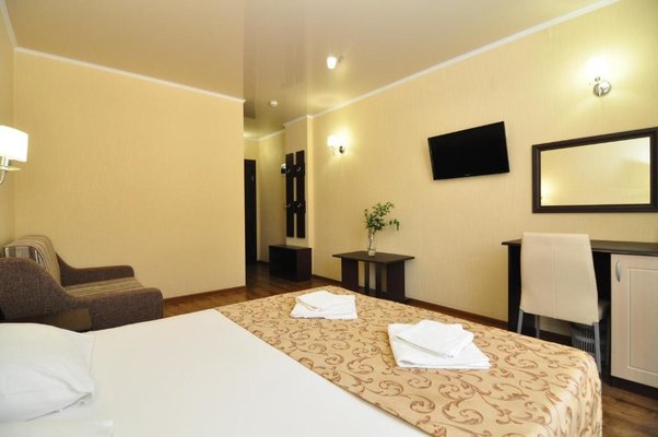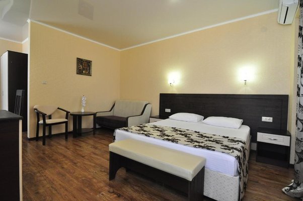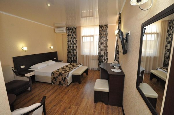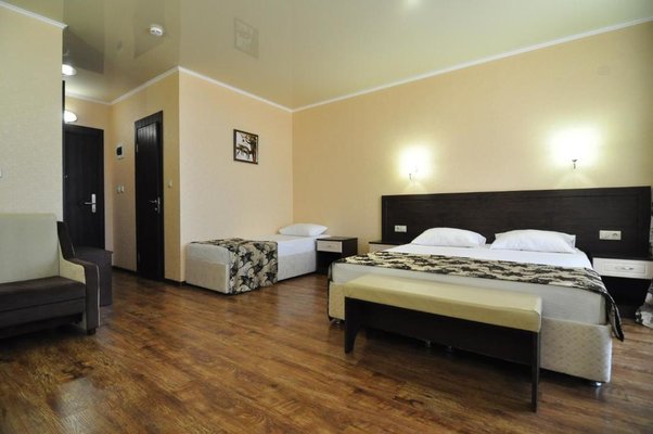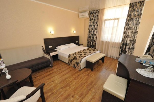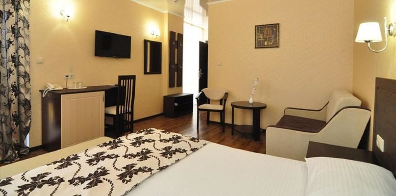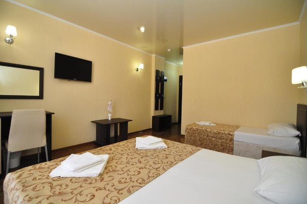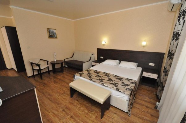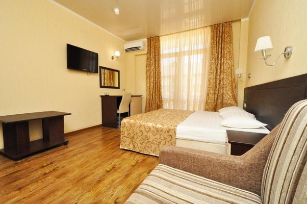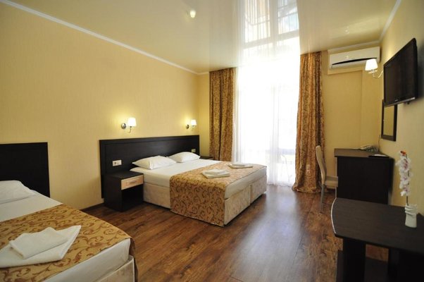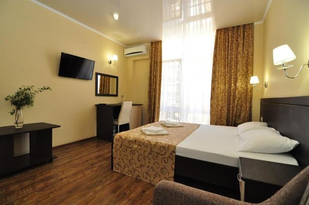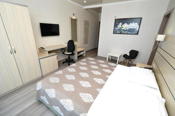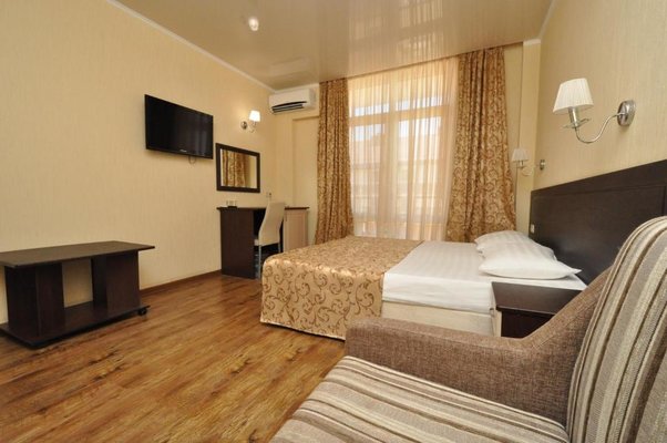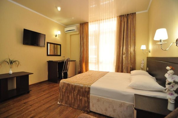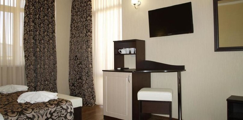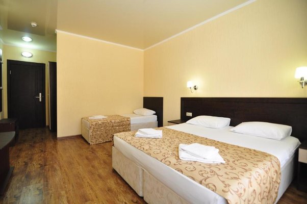 В шаговой доступности от отеля раскинулся благоустроенный городской пляж, предлагающий гостям все необходимое для комфортного отдыха у моря: зонтики, лежаки, навесы, удобные кабинки для переодевания и туалеты. А для любителей активных развлечений поблизости расположены популярные места отдыха: парк «Сказка», захватывающий аквапарк «Олимпия» и современный боулинг-клуб «Витязь».