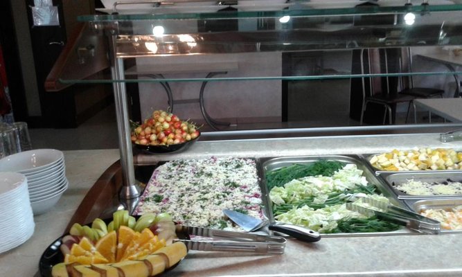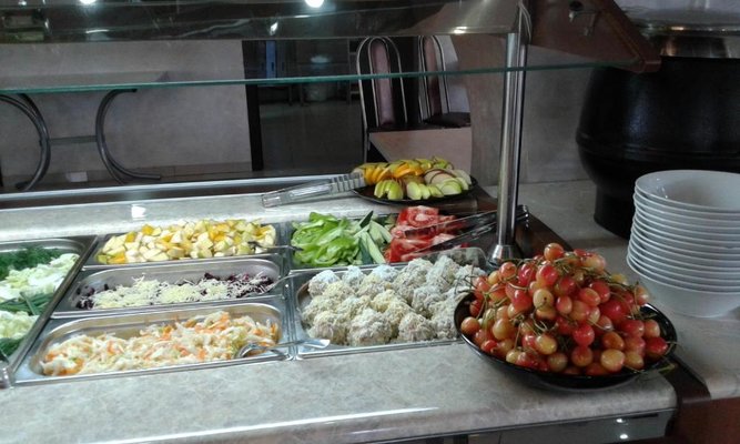 В столовой гостям предлагается трехразовое питание, сочетающее элементы «шведского стола». Разнообразие блюд и удобство выбора создают идеальные условия для наслаждения атмосферой и вкусом каждого приема пищи.