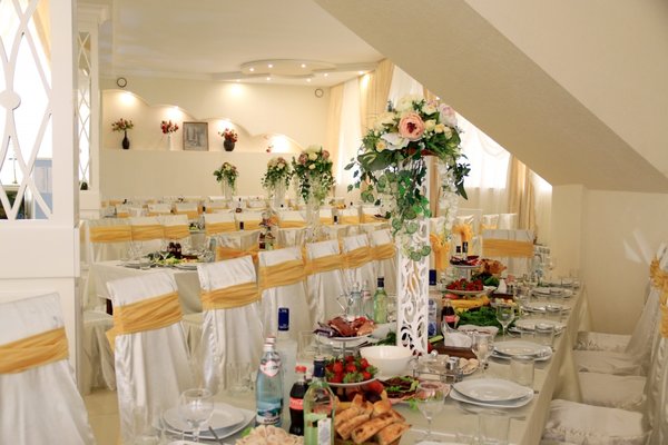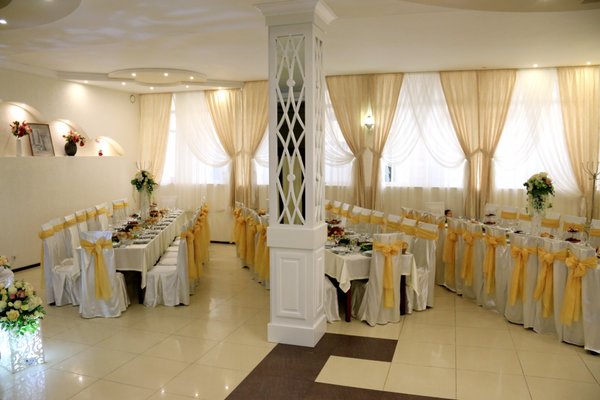 Просторный банкетный зал вместимостью до 140 человек идеально подходит для свадеб, корпоративных вечеров и других торжеств.