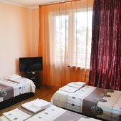 В номерном фонде отеля насчитывается 28 комфортабельных номеров категории «Стандарт», двух, трех и четырехместного размещения. В число удобств входит собственная ванная комната. Также на территории отеля можно воспользоваться услугами трансфера, сауны, парковки, есть детская площадка.